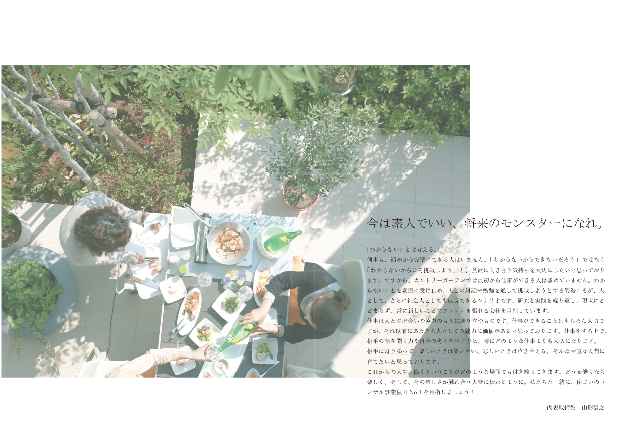 この仕事を生きがいと思って取り組むことの出来る方で、共に会社の運営を頑張ってくれる幹部候補生を増やしていきたいと考えております。