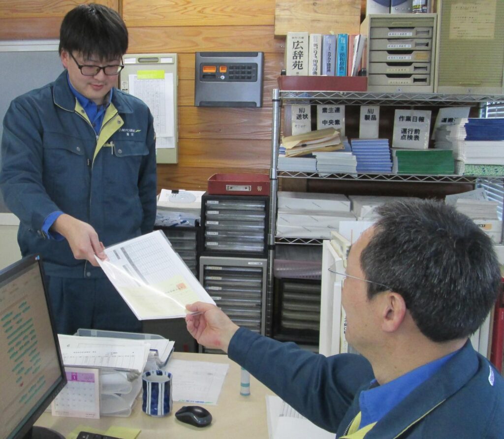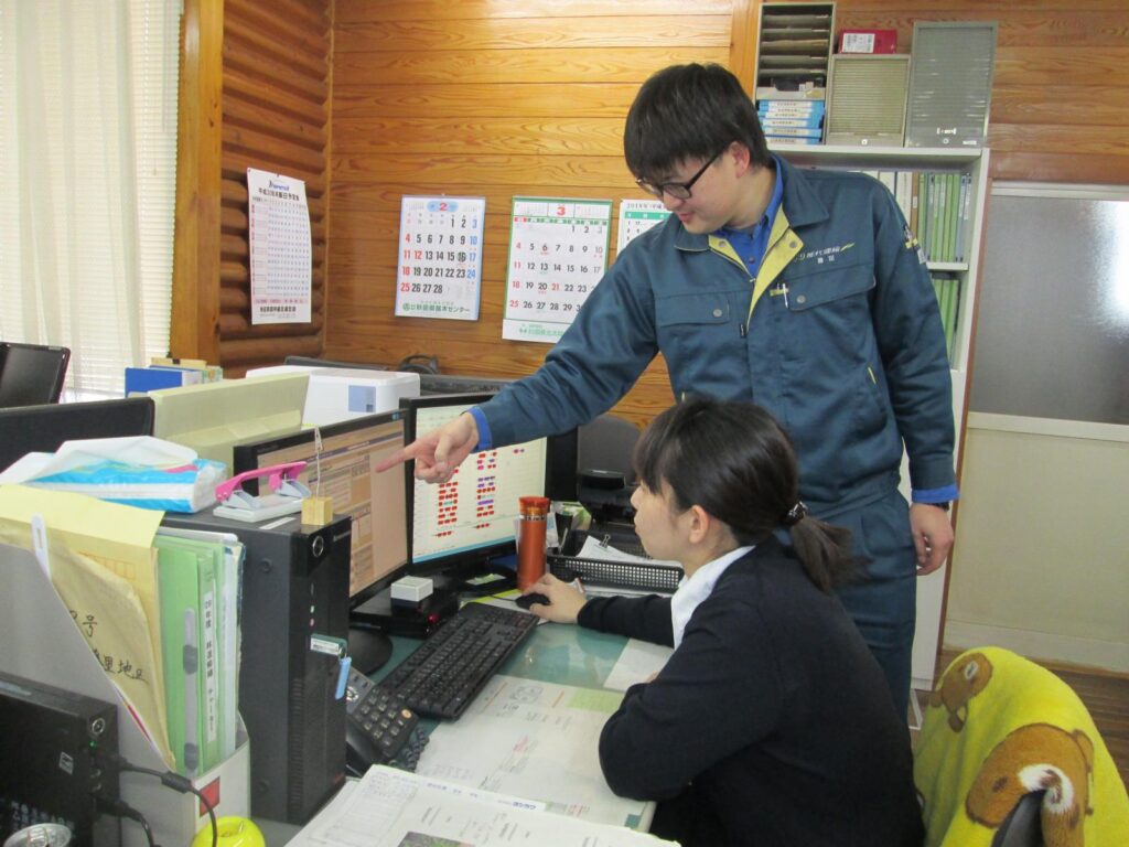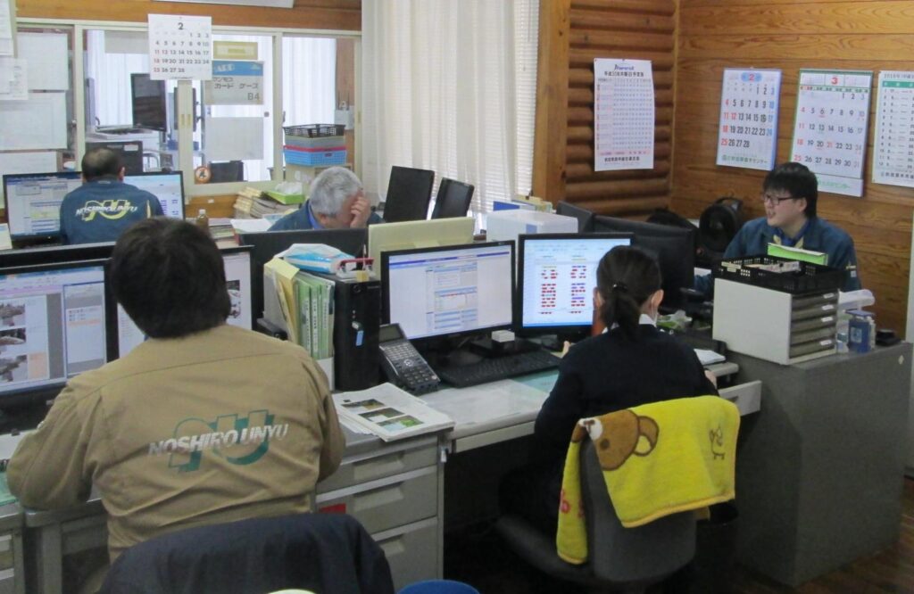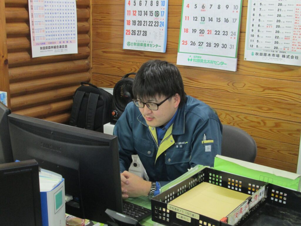 当営業所には林業、運送、チップ製造の3つの部門があり、それぞれの部門に対して事業における成果物の作成や運行・整備管理、在庫管理などといった管理業務を行っています。